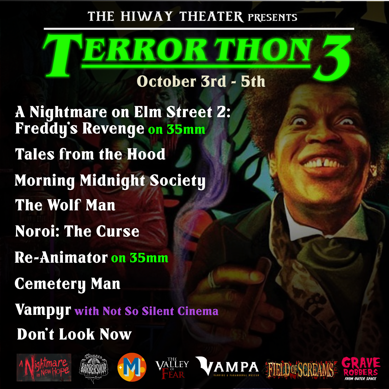 Back to All Events Terrorthon 3 Friday, October 3, 2025 7:30 PM Sunday, October 5, 2025 4:00 PM Hiway Theater 212 Old York Road Jenkintown, PA, 19046 United States (map) Google Calendar ICS We’re excited to partner with the Hiway Theater on this supernatural film festival! This three day event celebrates all cross sections of the horror genre, featuring iconic slashers and classic monsters to foreign cult classics. BUY TICKET